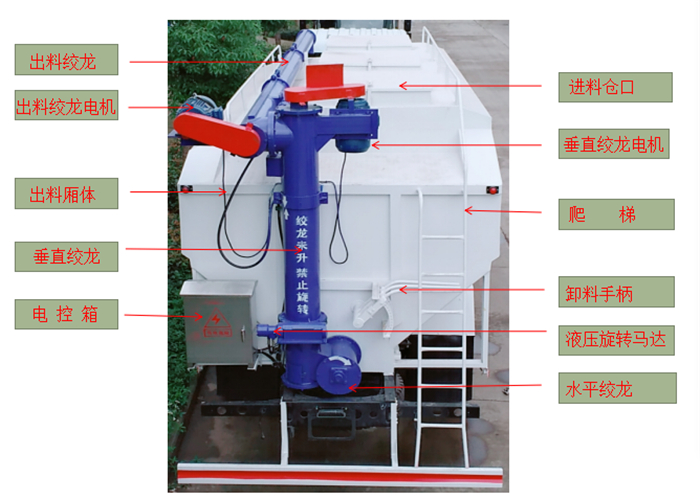 上裝罐體:罐體材質(zhì)采用4mm優(yōu)質(zhì)碳鋼板,整車3條絞龍,通過(guò)變速箱帶動(dòng)取力器取力后帶動(dòng)各絞龍工作,可左右旋轉(zhuǎn)180°。罐體內(nèi)分為四個(gè)倉(cāng),可以獨(dú)立控制各分倉(cāng)卸料順序和速度。(備注:此報(bào)價(jià)為標(biāo)配,國(guó)產(chǎn)電機(jī),德力西電柜)